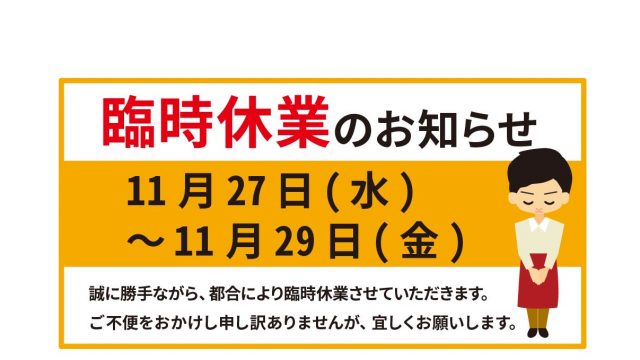 【臨時休業】11月27日(水)~11月29日(金)