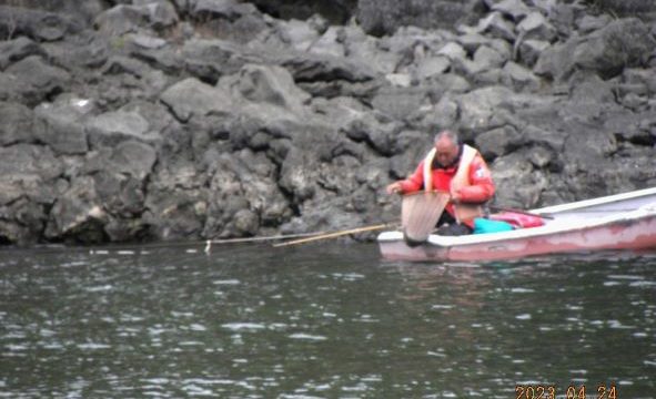 【令和5年4月22日( )】曇~pm晴、北風~pm南風、水温3℃、水澄、朝の気温9℃、昼は14℃