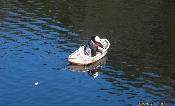【令和5年1月11日(水)】晴れ、穏やかな北と南風、水温2,5℃、水薄濁り、朝の気温-7℃、昼は7℃